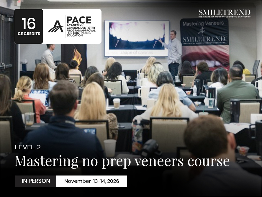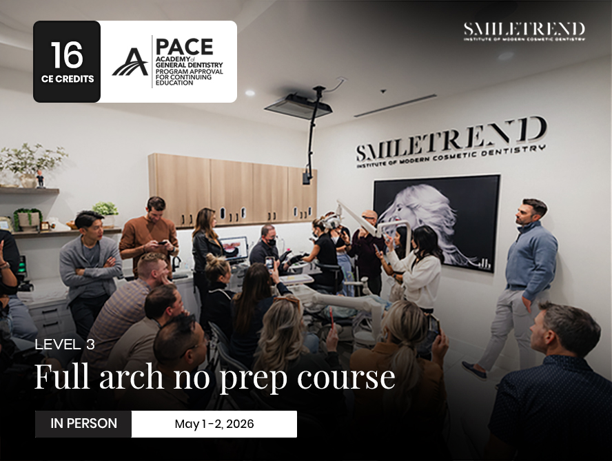 SmileTrend’s in-person courses are designed to meet you at every stage of your cosmetic dentistry journey. Level 1 lays the foundation with essential veneer principles and treatment planning. Level 2 builds on that with hands-on no-prep veneer mastery, live demos, and advanced case techniques. Level 3 takes you into full-arch transformations, occlusion, and complex smile design. You can also attend our Marketing Bootcamp to turn your clinical skills into consistent, high-value cases. For those ready to lead the industry, our Premier Program offers elite coaching, custom branding, and high-level strategy by invitation only.